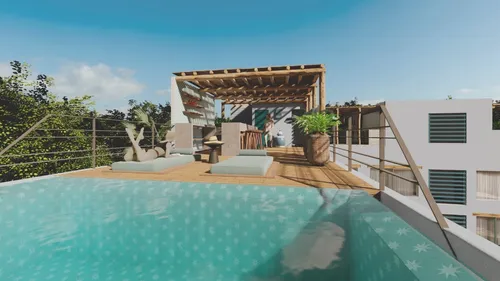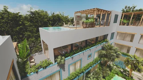 4 Roof Top privados con asoleadero, alberca y jacuzzi además de 16 departamentos ubicados en una zona privilegiada de Tulum, colindando con la zona de mayor plusvalía de la ciudad. Esta ubicación estratégica permite a los residentes disfrutar de un estilo de vida de primer nivel, combinando el fácil acceso a todos los servicios, a las playas y al mismo tiempo disfrutar de la tranquilidad y seguridad de vivir en una zona exclusivamente residencial.