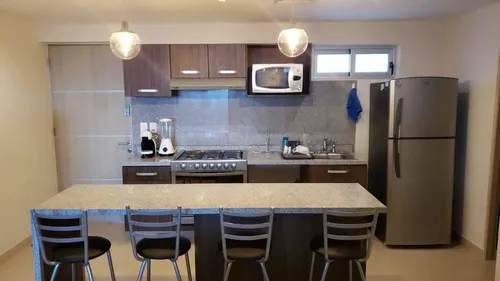 Lindo departamento en PB con dos recámaras, living, desayunador. cocina armónicamente integrados. Incluye cuarto de lavado y terraza con vista a la Laguna de Nichupté. Cuenta con área de alberca y jacuzzi. Muy céntrico, rodeado de muchos comercios y a un costado de Plaza de las Américas. Precio Negociable.