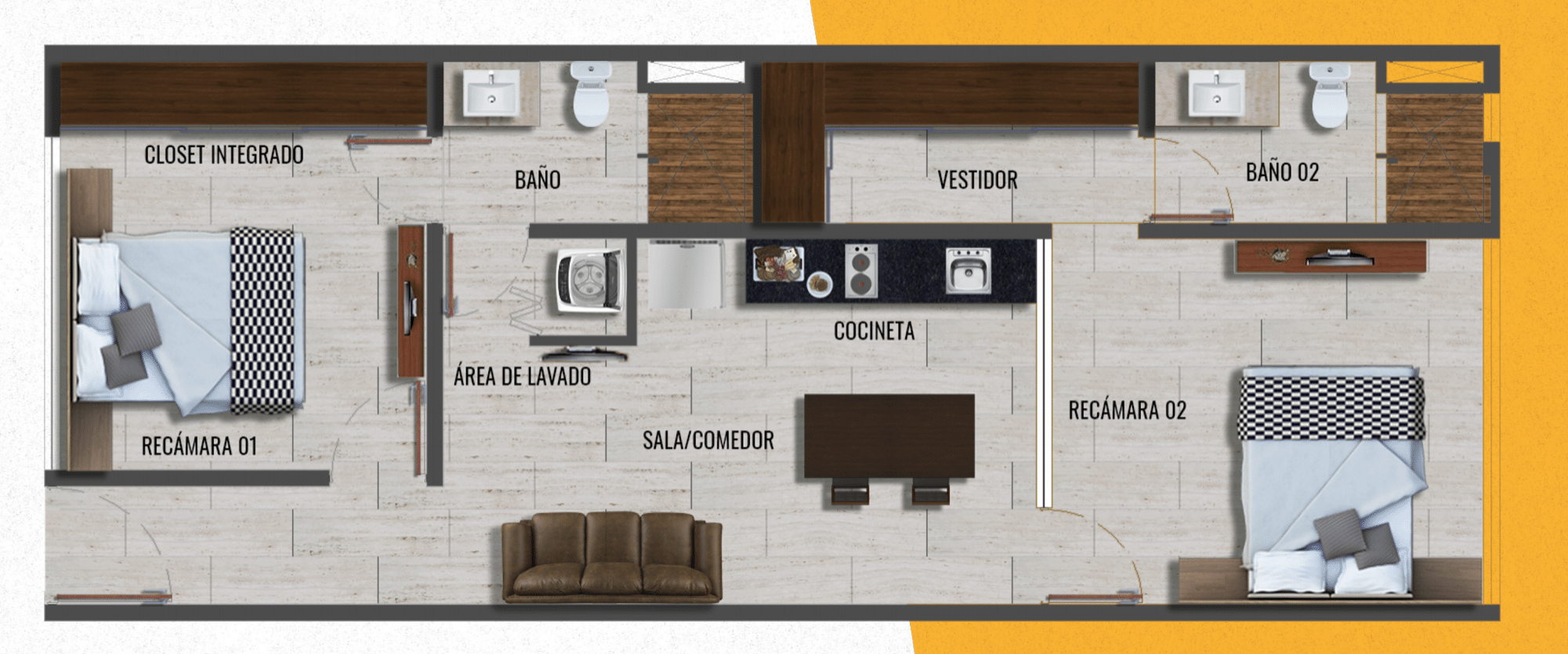 Gracias a las características de cada uno de los departamentos, estudiantes y matrimonios jóvenes encontrarán todo lo que necesitan para una etapa llena de experiencias y emociones nuevas.