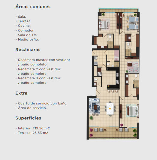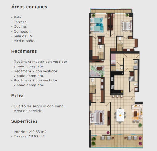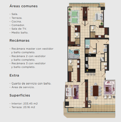 Son 13 unidades divididas en 109 condominios y 4 pent-house en una torre de 20 niveles, frente a la majestuosa marina de Puerto Cancún. Todas sus unidades cuentan con finos acabados de lujo, cancelería y cocina integral.
